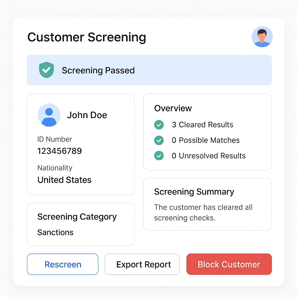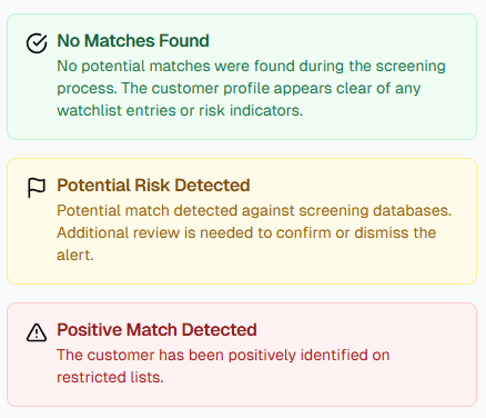 - Potential Match Detected – Needs further review to confirm risk